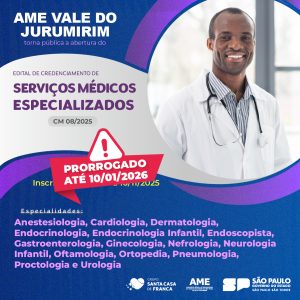 CREDENCIAMENTO MÉDICO 08/2025 – AME VALE DO JURUMIRIMPor João Vitor Queiroz / 30 de outubro de 2025 Leia o edital completo aqui. Leia o edital de prorrogação aqui.