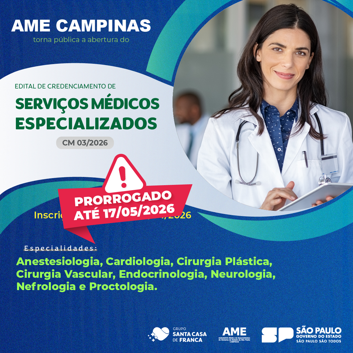 CREDENCIAMENTO MÉDICO CM 03/2026 – AME CAMPINAS – PRORROGADO ATÉ 17/05/2026Por João Vitor Queiroz / 8 de abril de 2026 Leia o edital completo aqui. Leia o edital de prorrogação aqui.