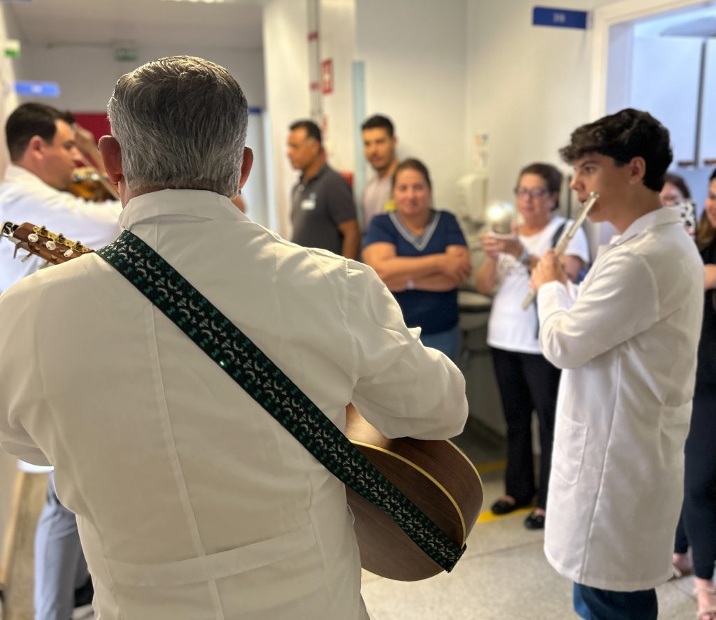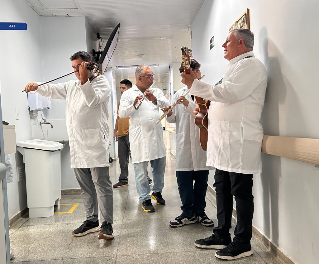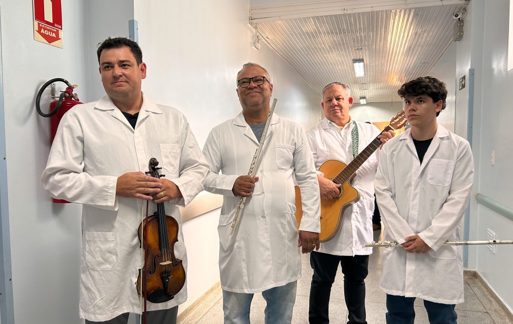 O grupo, formado por músicos que utilizam instrumentos como violino, flauta e violão, visitou quartos e corredores. A atividade acontece em diferentes setores da instituição, como Hemodiálise, Ambulatório Escola, entre outros, promovendo momentos de acolhimento, sensibilidade e conexão humana em um contexto frequentemente marcado por ansiedade e fragilidade emocional. A iniciativa faz parte de um trabalho contínuo dos participantes, que realizam ações semelhantes em diferentes instituições e espaços sociais.