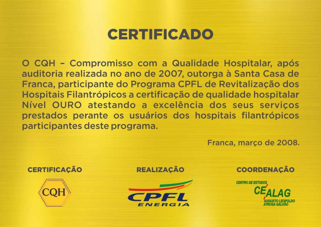 Certificado Ouro em Qualidade Hospitalar